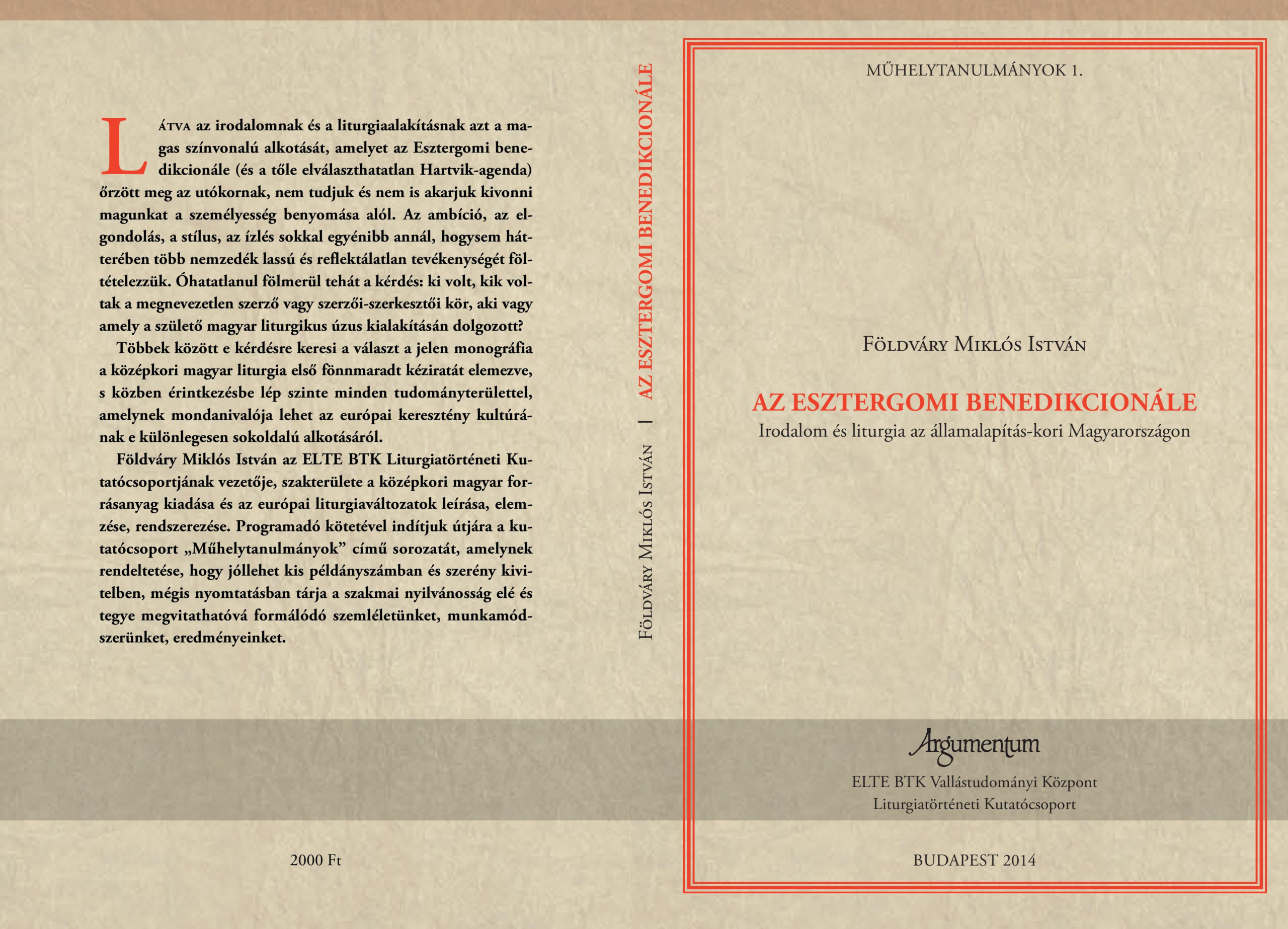 ELTE BTK Vallástudományi Központ Liturgiatörténeti Kutatócsoport kiadványa – Műhelytanulmányok sorozat 1. kötete 2014